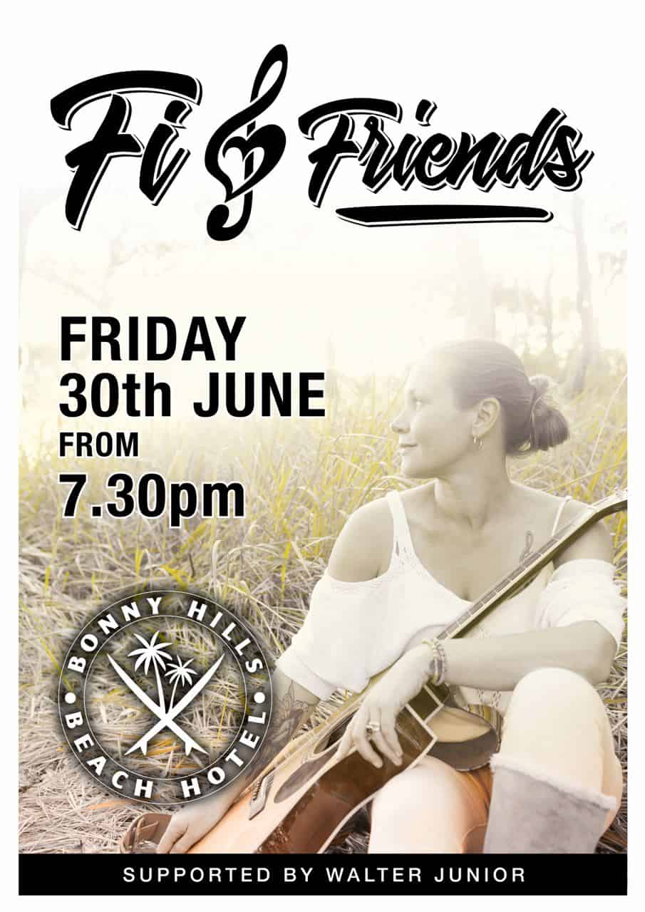 Fi’s unique rustic tones might catch you by surprise when singing songs from Fleetwood Mac, Cold Chisel, Janis Joplin, the Waifs, Bonnie Raitt, Train and maybe even some INXS too. Finding music a little later than most; Fi only started singing publicly in 2011 thanks to a local open mic on the Central Coast…. And the rest has been a fantastic journey filled with laughter and learning of singing and guitar. Moving to the Mid North Coast in 2019 with 10 yrs of open mic nights under her belt, Fi saw an opportunity to meet some like minded musos and started her own weekly Open Mic; from there Fi & Friends formed as gigs started rolling in…. These days the mind blowing master on guitar, Walter Junior (The Instigators) is accompanying Fi to bring you some Aussie favourites as well as a great set of familiar tunes to rock the night away.