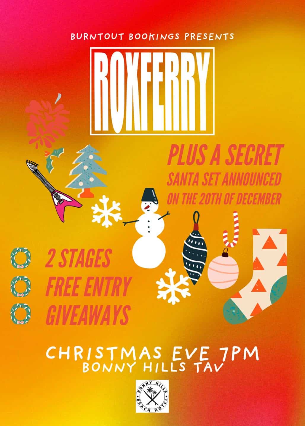2 STAGES FEATURING LOCAL ARTIST ROXFERRY , AND A SECRET SANTA SET WITH GIVAWAYS AND FREE ENTRY